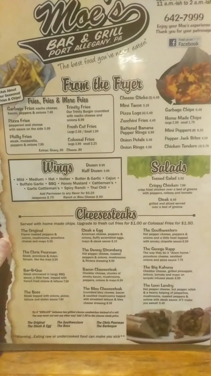 Welcome to Moe's Bar & Grill Port Allegany, a must-visit haven for burger enthusiasts! Located at 68 W Mill St, this hidden gem offers a menu that bursts with flavor and creativity. While the atmosphere may not steal the show, the exceptional food certainly will.